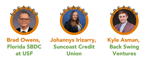 Speaker: Kyle Asman with Back Swing Ventures, Johannys Irizarry with Suncoast Credit Union, and Brad Owens, Florida SBDC at USF Engage with a panel of capital-raising experts and learn how to fund your venture. Education Series classes are complimentary and available for anyone to attend at no cost. |